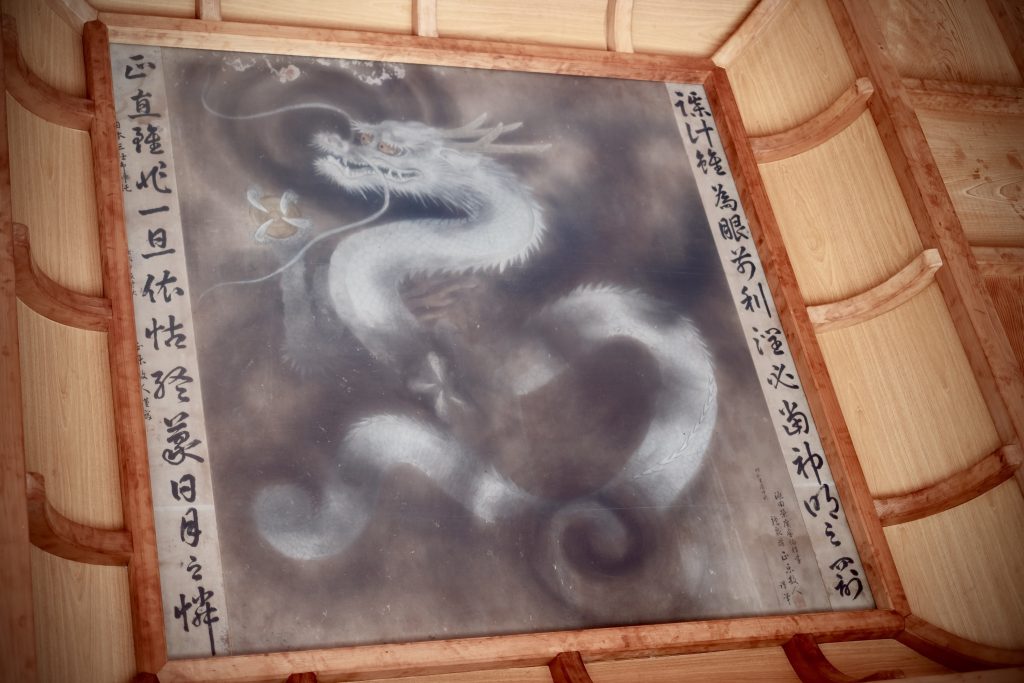 The resemblance begins with its name. The word “Kamado,” shared with Tanjiro Kamado’s family name, already sparks excitement. Inside the main hall, a dragon deity painted on the ceiling protects the shrine from fire, its form uncannily similar to the water dragon that swirls behind Tanjiro’s “Water Breathing” techniques.