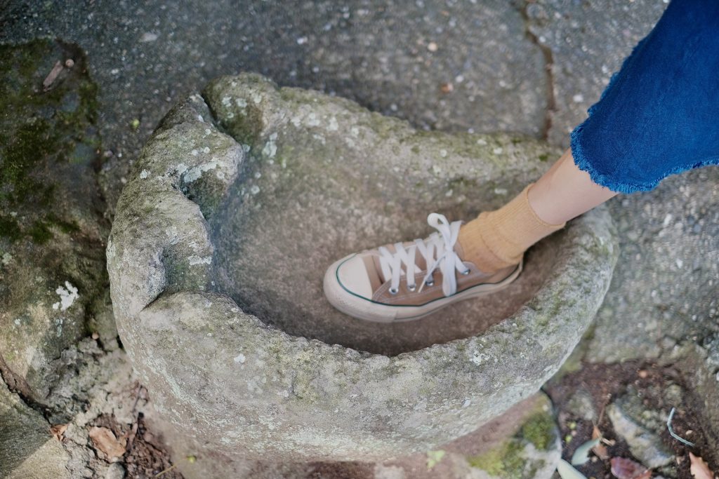 The parallels continue in legend. According to local lore, the long stone staircase leading up to the shrine was built by a man-eating demon under divine command. It completed ninety-nine before sunrise, but as the first light broke, the demon fled and was never seen again—just as sunlight destroys demons in the story. Nearby, visitors can try on the demon’s forgotten stone sandals, said to grant strength to anyone who slips them on.