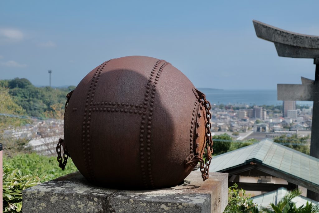 At the top of the staircase stands a massive iron naval mine, once dedicated by the Japanese Navy after World War I. Visitors can’t help noticing its resemblance to the spiked weapon wielded by Gyomei Himejima, the Stone Hashira, making it another fun point of connection for those on their own Demon Slayer pilgrimage.